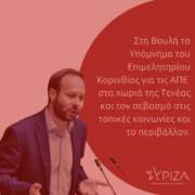 Ως βουλευτής Κορινθίας, γνωρίζω καλά τις αγωνίες και τις προσπάθειες των τοπικών κοινωνιών μας γύρω από το ζήτημα των απορριμμάτων. Η Κορινθία –μια περιοχή με πλούσιο φυσικό περιβάλλον – δεν αντέχει άλλες περιβαλλοντικές επιβαρύνσεις. Οι πολίτες και οι φορείς της Κορινθίας έχουν επανειλημμένα αγωνιστεί για λύσεις βιώσιμες, ενάντια σε πρακτικές που μετατρέπουν τον τόπο μας σε σκουπιδότοπο. Εκτός των άλλων, οι βασικές αρχές της εδαφικής δικαιοσύνης και της εγγύτητας στη διαχείριση παραβιάζονται από τον κεντρικό σχεδιασμό καύσης. Το πολύ σοβαρό αυτό ζήτημα, που έχει πανελλαδική έκταση, έχει ήδη φτάσει στη Βουλή με Ερωτήσεις μας στα συναρμόδια Υπουργεία, ενώ πρόσφατα ήρθε για συζήτηση με Επίκαιρη Ερώτηση του Τομεάρχη Περιβάλλοντος & Ενέργειας του ΣΥΡΙΖΑ-ΠΣ, Μ. Ζαμπάρα.